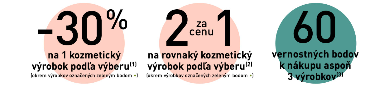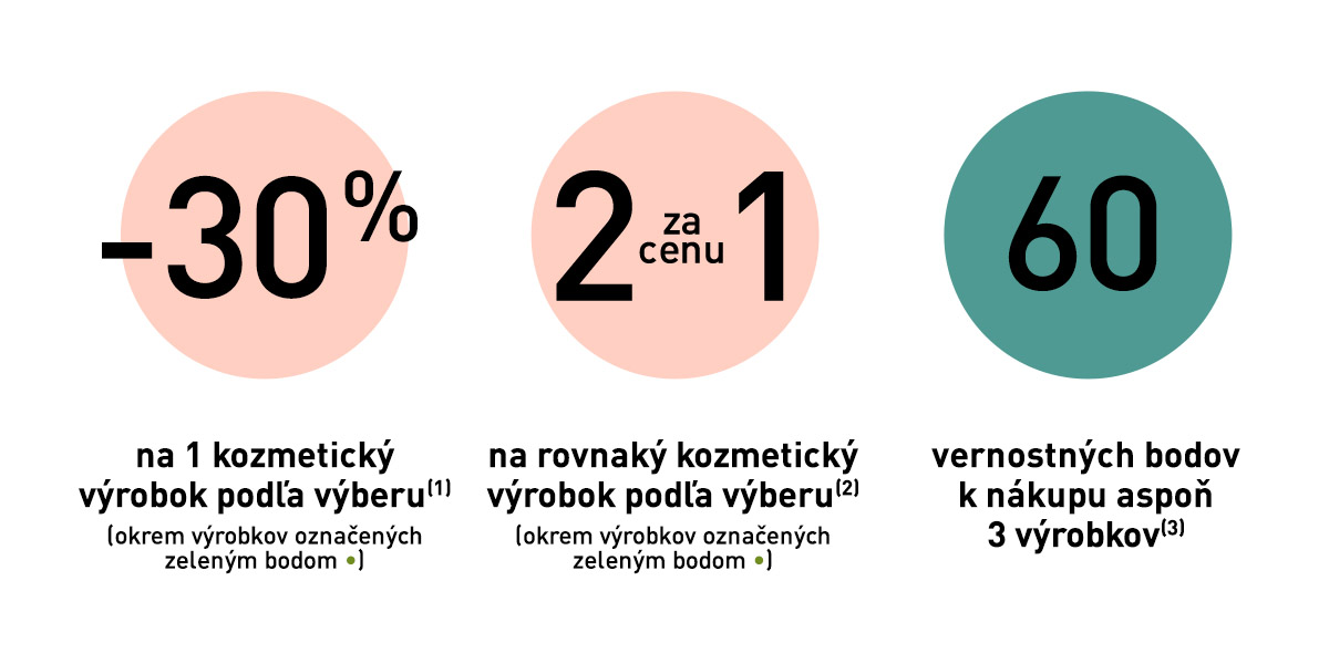 Ponuka platí do vydania zásob. Zmena darčeka vyhradená. Darček bude vydaný len raz. K nákupu 3 produktov 60 vernostných bodov jednorázovo. Newsletter nie je možné uplatniť po platnosti. Ponuka platí v kamennych predajniach a v internetovom obchode do 28.2.2022. Ponuku nie je možné kombinovať a kumulovať s inými akciami. Pred potvrdením objednávky si prosím skontrolujte, či sa zľava načítala. V opačnom prípade sa akčná ponuka neuplatnila. Keď využijete ponuku tohto mailingu, nie je možné vkladať darčeky z ponuky e-shopu. Na ponuku mailingu sa nedá uplatniť vernostná zľava.
