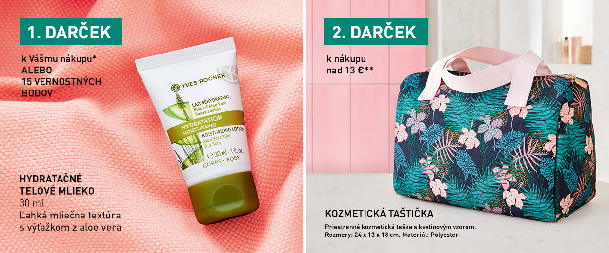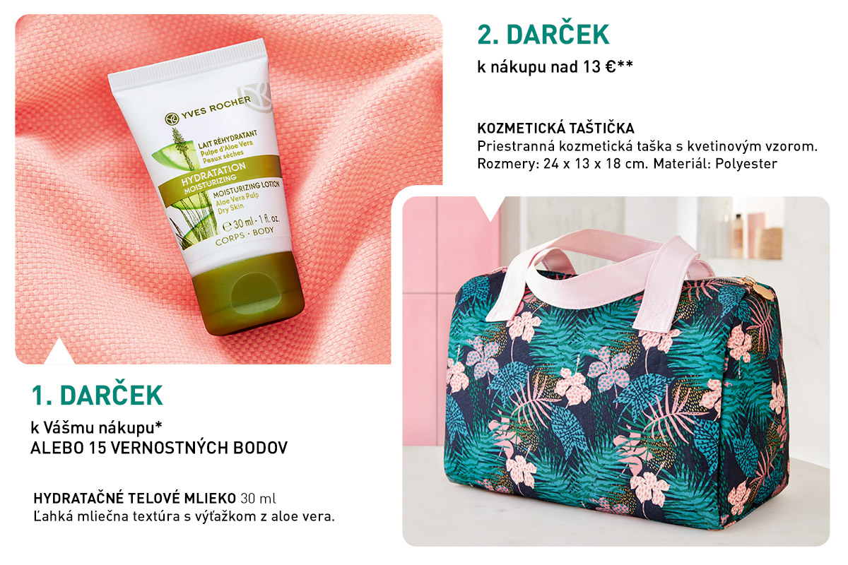 ** Jedna kozmetická taštička alebo 25 vernostných bodov k nákupu nad 13 € na zákazníka.