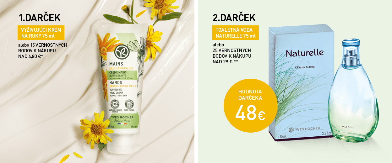 ** Zľavy a ponuky sa nekumulujú. Jedna Toaletná voda Naturelle 75 ml alebo 25 vernostných bodov k nákupu nad 29 € na zákazníka.Ponuka platí do vydania zásob. Zmena darčeka vyhradená.