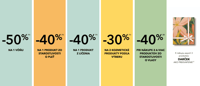 (3) Jeden darček ako prekvapenie k nákupu aspoň 3 produktov. Zľavy a ponuky sa nekumulujú. Ponuka platí do vydania zásob. Zmena darčeka vyhradená.