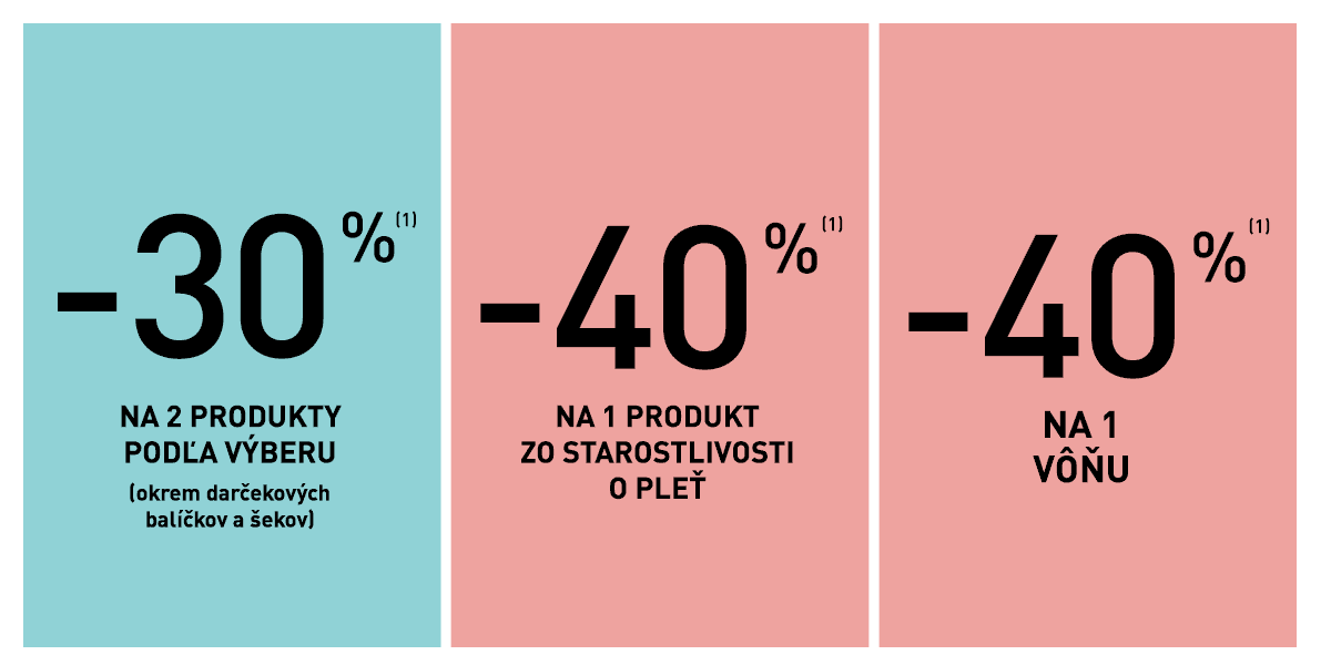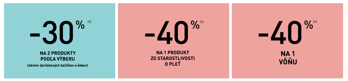 (1) Zľavy a ponuky sa nekumulujú.Ponuka sa nevzťahuje na balíčky a darčekové šeky.