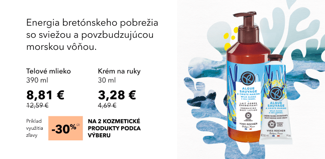 *Jeden sprchovací gél Morská riasa & motar prímorský 200 ml alebo Puzdro na telefón alebo 15 vernostných bodov k nákupu nad 4,80 € na zákazníka. Zľavy a ponuky sa nekumulujú. Ponuky platia do vydania zásob. Zmena darčekov vyhradená. Darčeky budú vydané len raz.