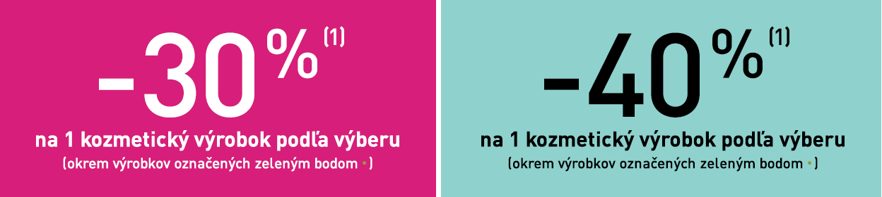 (1) Zľavy a ponuky sa nekumulujú. Ponuka sa nevzťahuje na výrobky označené zeleným bodom •. Darčeky budú vydané len raz. Všetky zľavy sa vypočítavajú zo základných cien pred zľavou odporučených v SR od 3. 4. 2023.