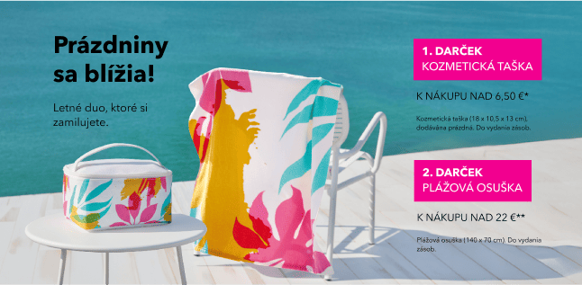 **Jedna plážová osuška k nákupu nad 22 € na zákazníka.