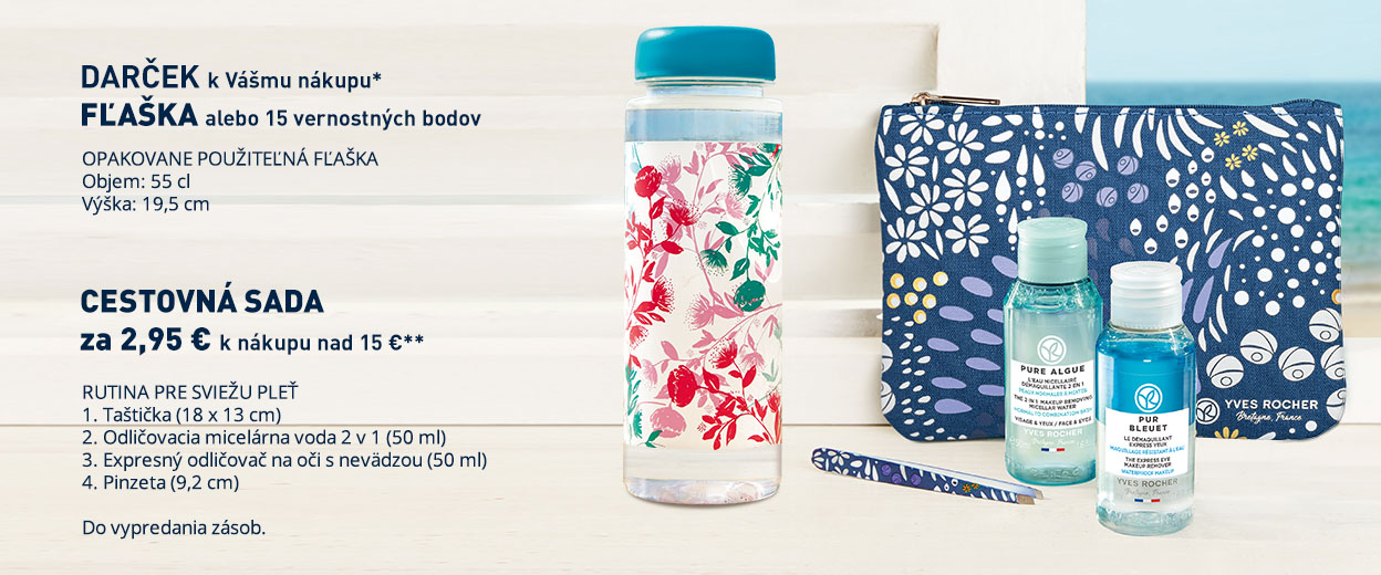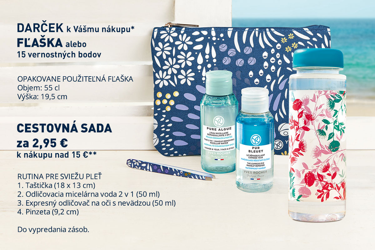 ** Zľavy a ponuky sa nekumulujú. Jedna cestovná sada za 2,95 € k nákupu nad 15 € na zákazníka. Ponuka platí do vypredania zásob. Zmena darčeka vyhradená.