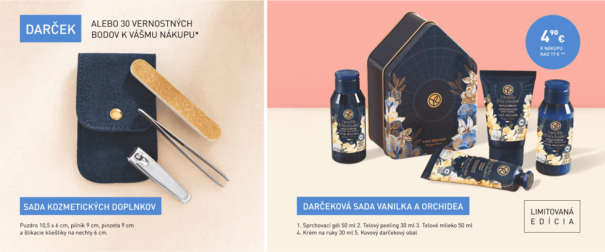 *Zľavy a ponuky sa nekumulujú. Jedna Sada kozmetických doplnkov alebo 30 vernostných bodov k nákupu nad 4,80 € na zákazníka.