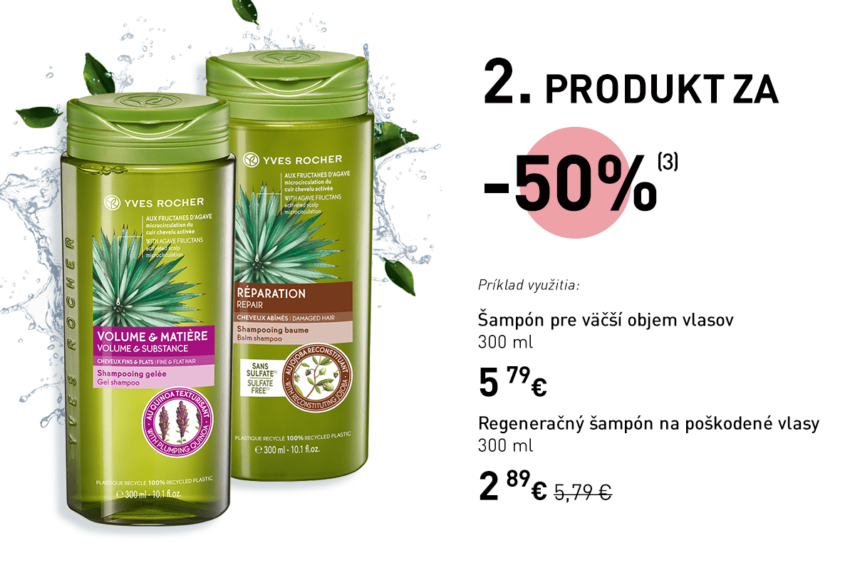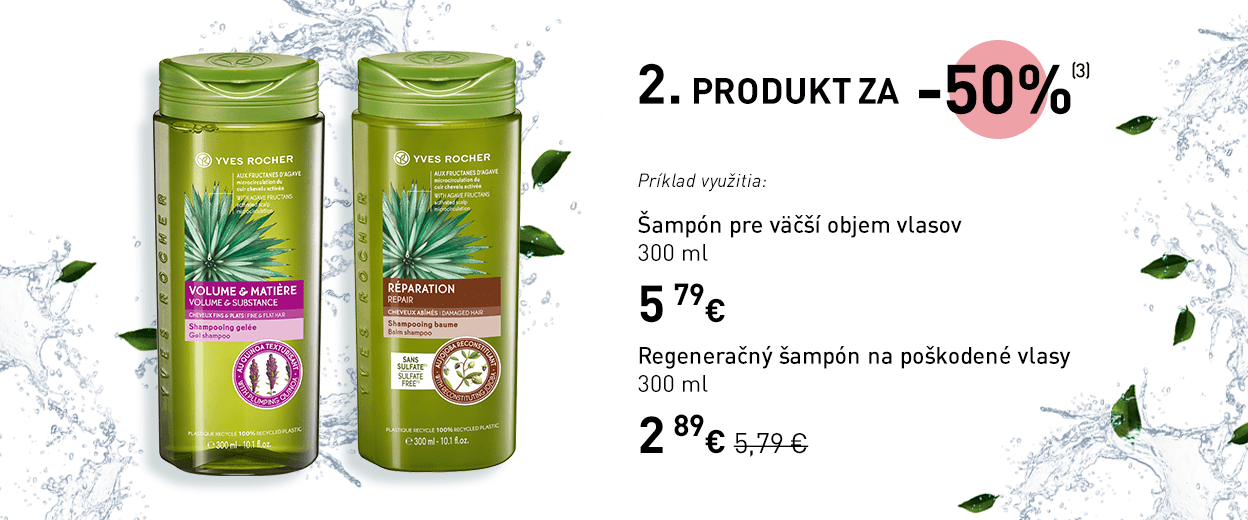 (3) Zľavy a ponuky sa nekumulujú. Ponuka sa vzťahuje na šampóny a kondicionéry z radu Rastlinná starostlivosť o vlasy. Zľava 50 % bude uplatnená na druhý produkt (šampón alebo kondicionér) v nižšej alebo v rovnakej hodnote.