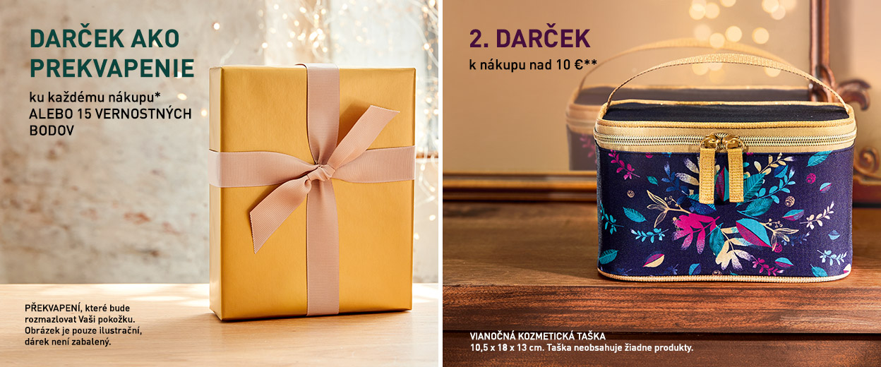 ** Jedna vianočná kozmetická taška alebo 25 vernostnýchh bodov k nákupu nad 10 €.