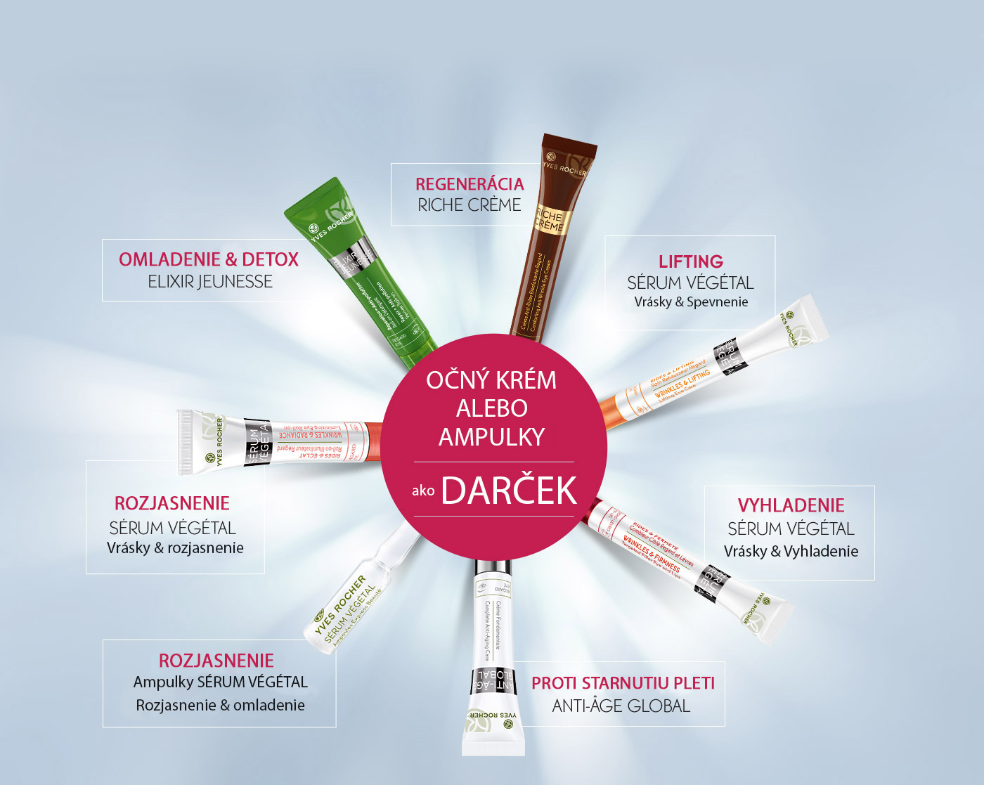 Vyber si svoj očný krém krem alebo rozjasňujúce ampulky ako DARČEK k nákupu jedného z produktov nižšie (produkt zdarma si môžete vybrať v košíku po tom, čo si doňho pridáte niektorý z týchto produktov):