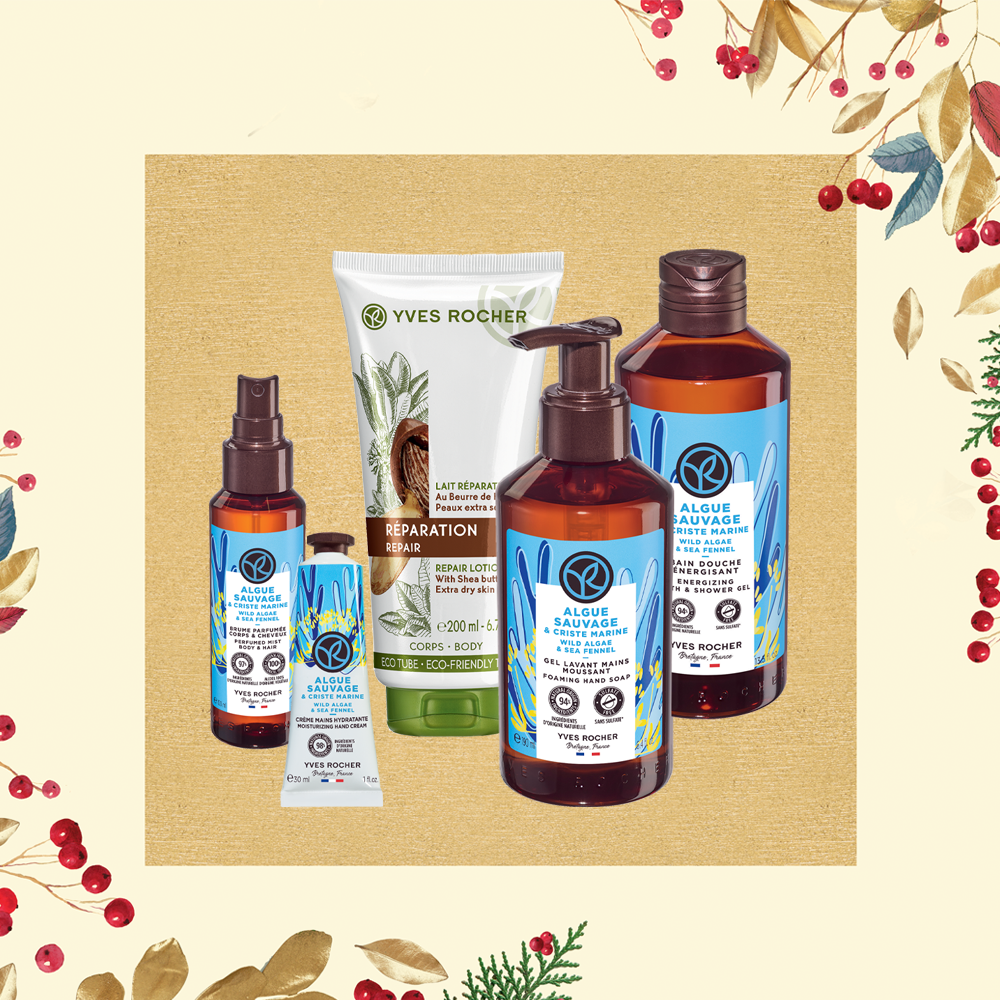 Vianočná sada Bain de Nature (sprchovací gél + tekuté mydlo na ruky + regeneračné telové mlieko + krém na ruky + parf. sprej)