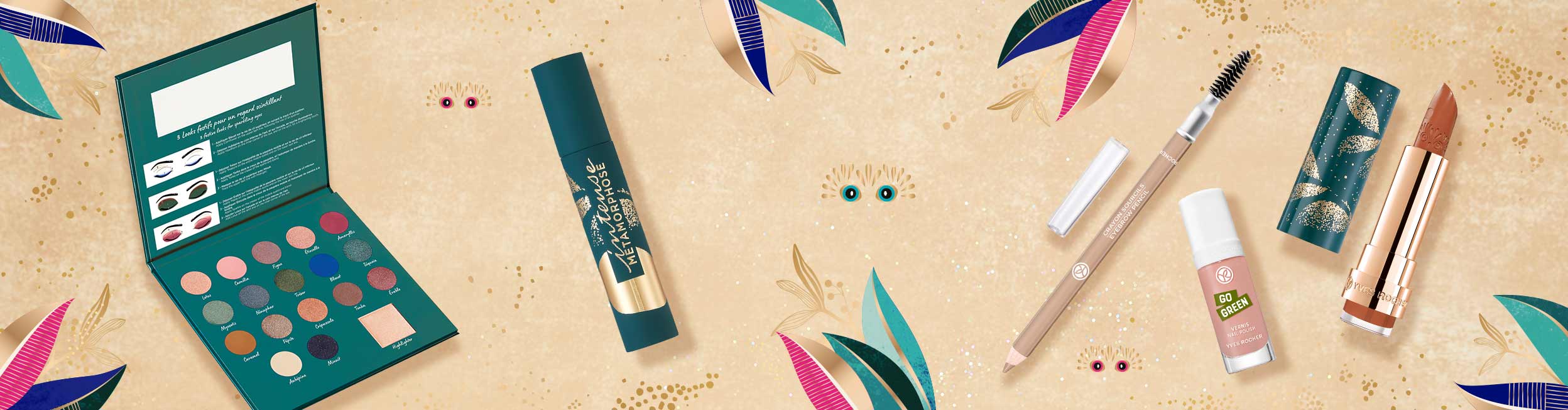 Začnite nanesením trblietavých očných tieňov s oranžovým nádychom na celé pohyblivé viečko až k vonkajšiemu kútiku oka a pozdĺž rias na spodnom viečku. My sme pri líčení použili odtieň Crépuscule z limitovanej Palety očných tieňov pre zimné líčenie.